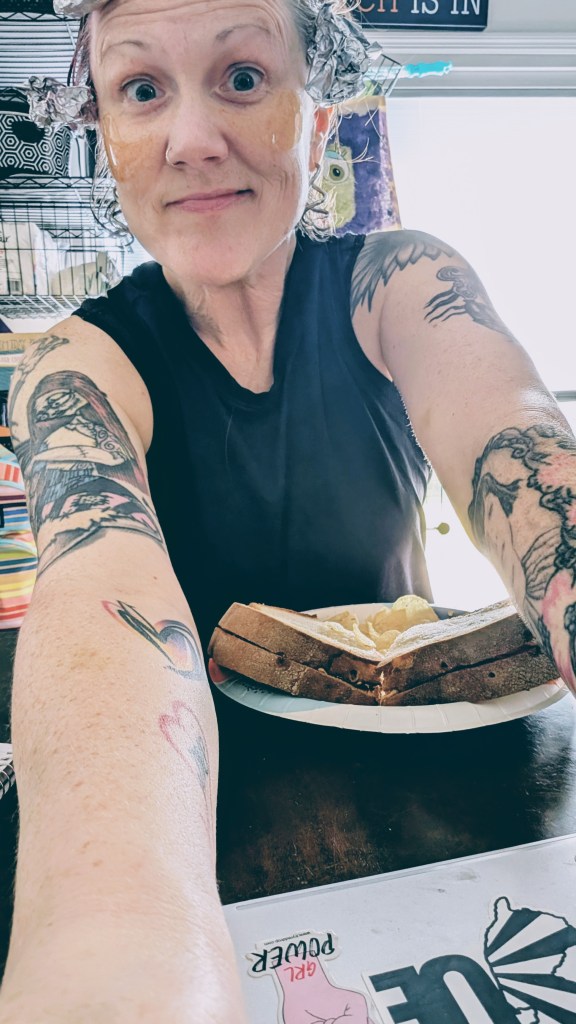 Tattoos are a form of self care! Just like my under eye patches and brightly colored pieces of hair.